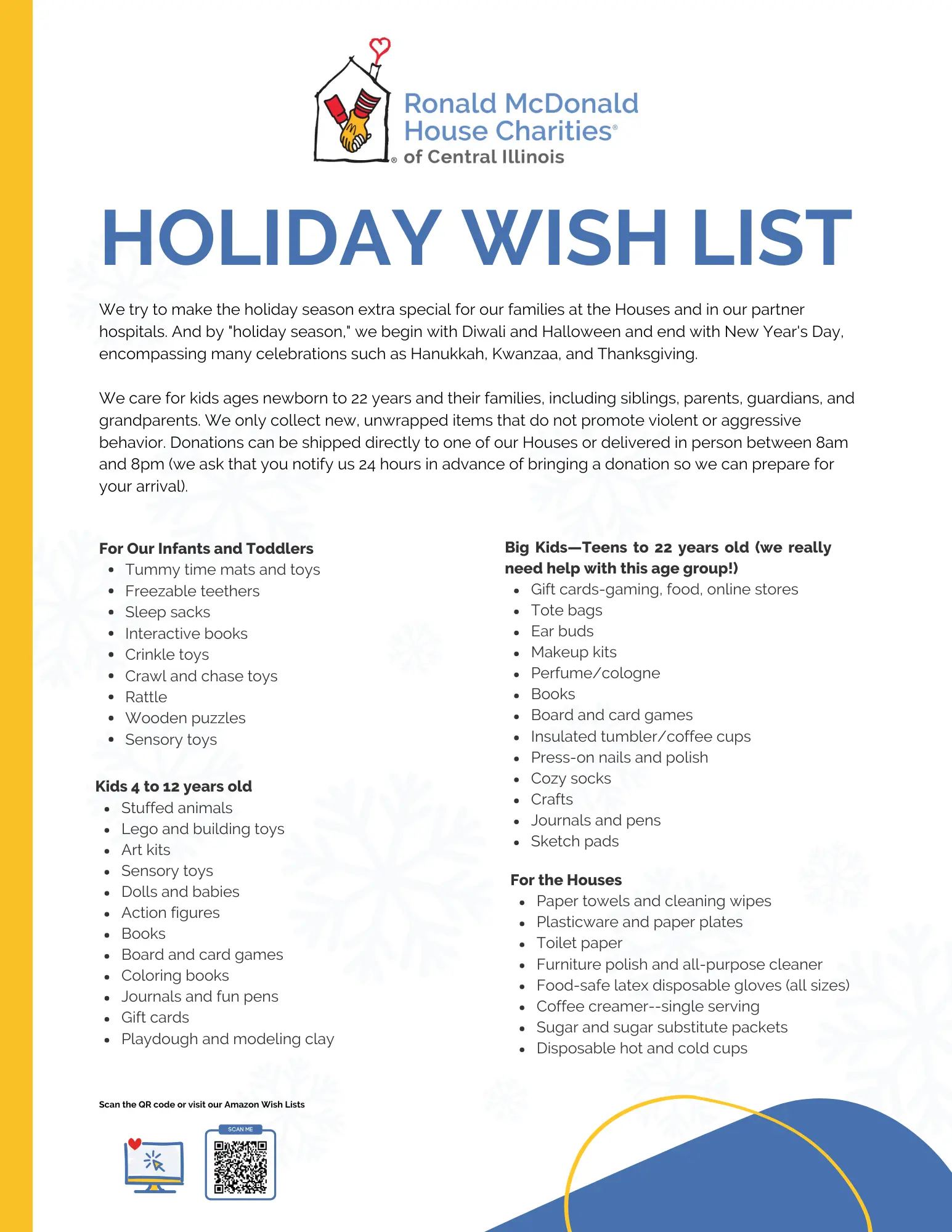 Our Houses are just like your home – we need the basics and more to help comfort and support families.