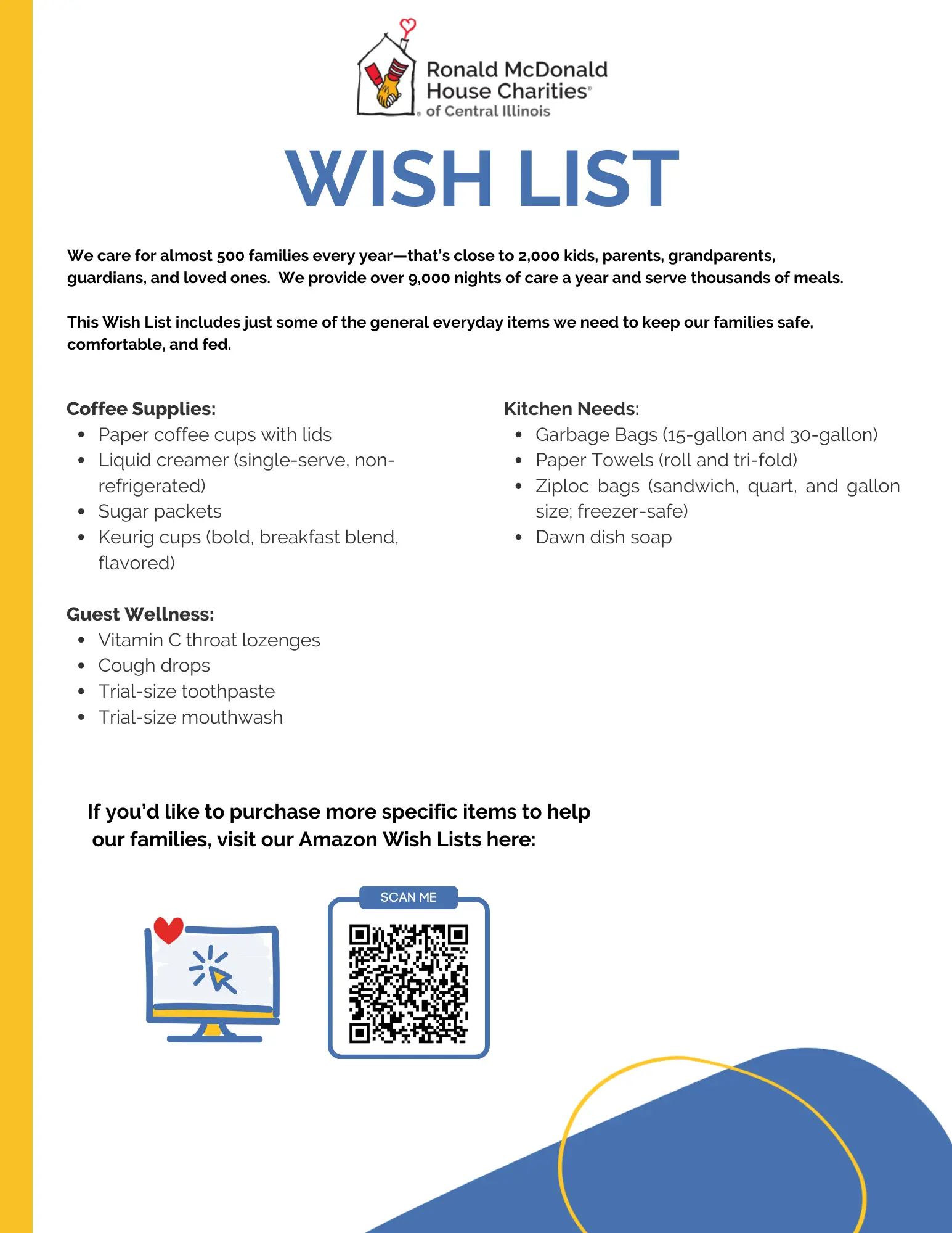 Our Houses are just like your home – we need the basics and more to help comfort and support families.